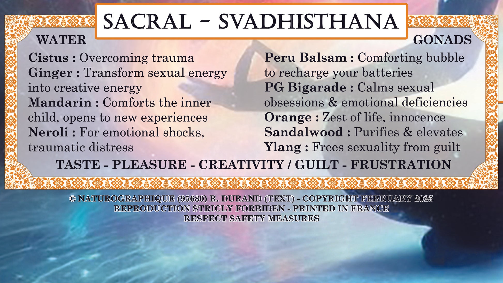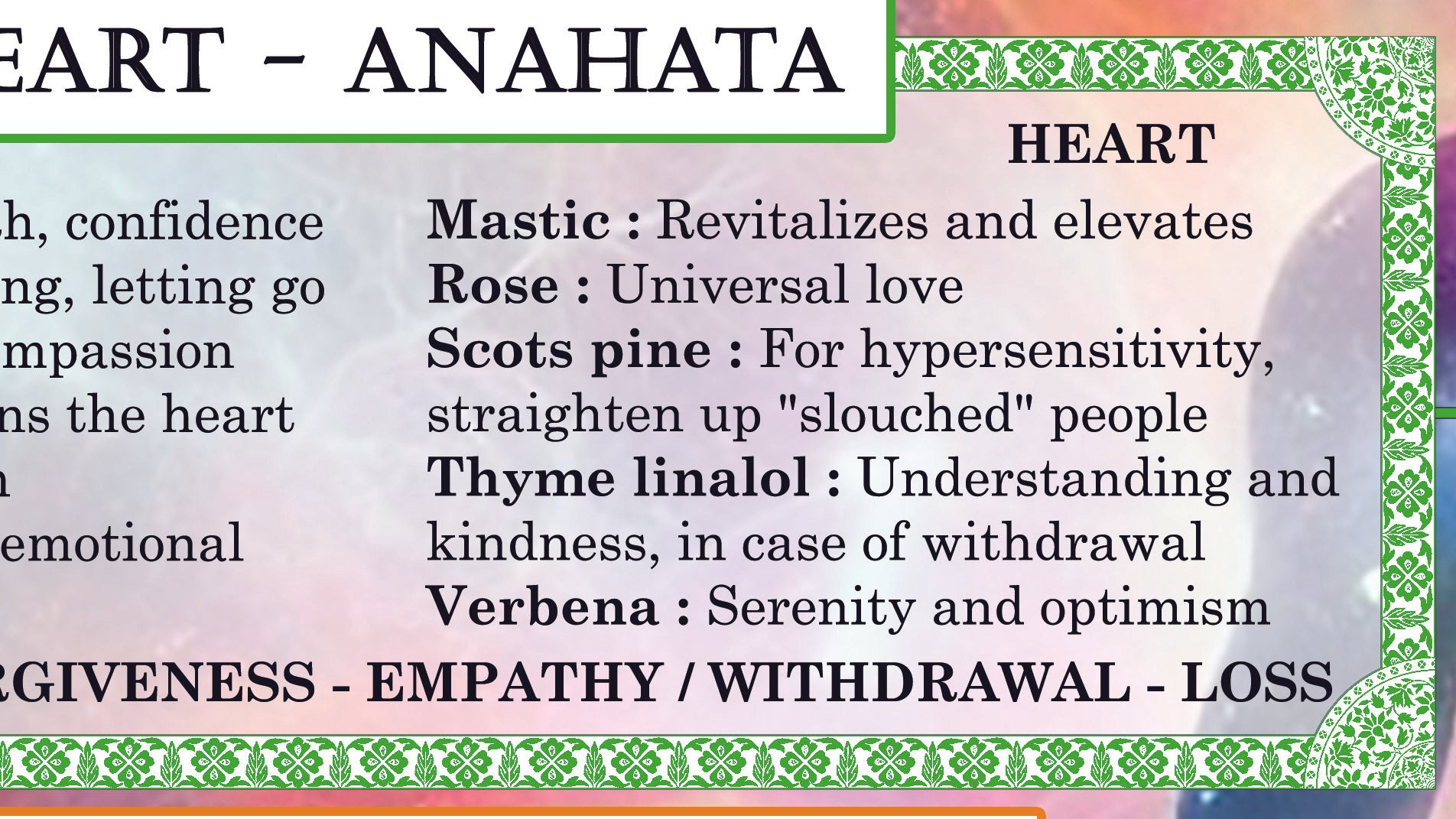 Inhale a bottle or a splash of perfume while setting an intention . Focus on the scent , the emotions it evokes, and the memories it brings back. Notice which chakra or organ is activated and discover the properties of the plant .